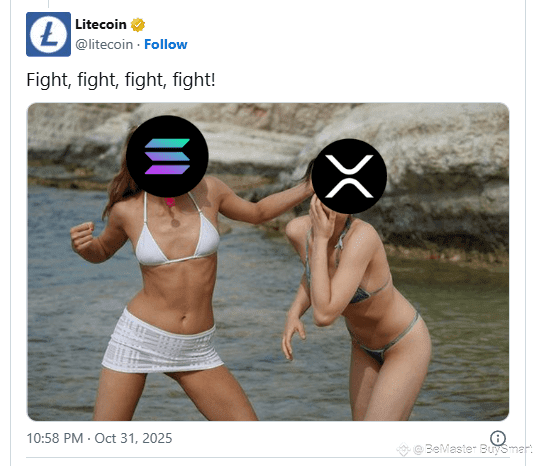 Not wanting to miss out, Litecoin’s official account entered the debate with humor. It shared a meme featuring two women labeled “Solana” and “XRP” fighting, captioned: